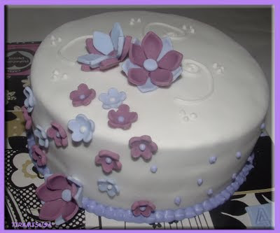 Esta tarta me la pidió Nina, amiga de mi madre para su hija, y me dejó rienda suelta…. me encantan las tartas con pocos colores y sobre todo blanco con morado, rojo o negro…