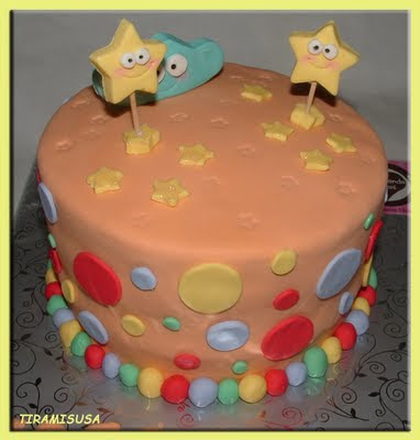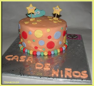 es muy bonita, seguro que los niños y los profes alucinaron al ver una tartita fondant.