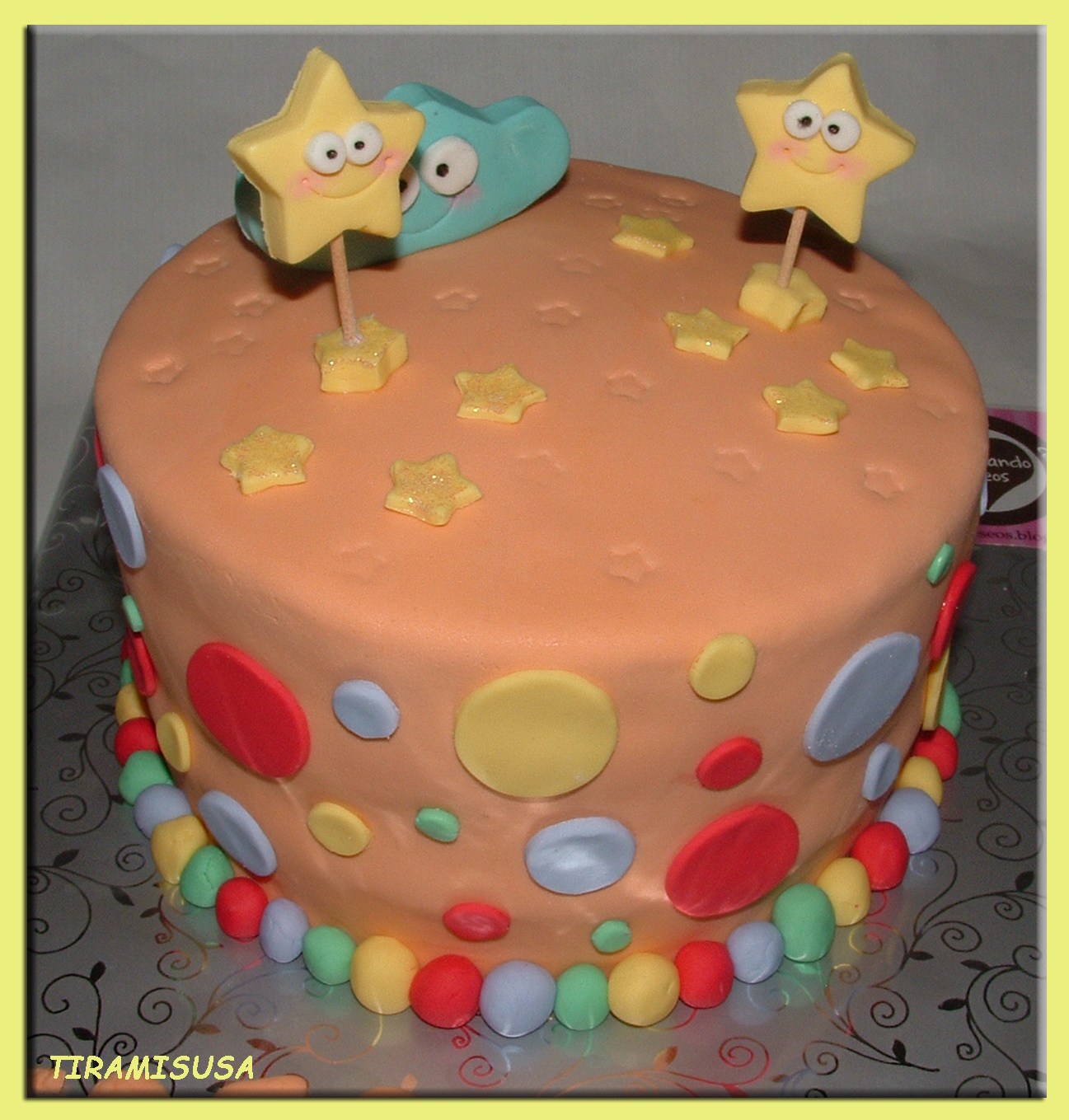 es muy bonita, seguro que los niños y los profes alucinaron al ver una tartita fondant.